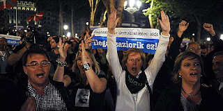 Por otra parte, en lo referente a la política española, el acoso a la formación Bildu (por cierto, con un apoyo de un 18% del electorado vasco, según encuestas recientes) ha puesto sobre el tapete lo que para mí es un claro déficit democratico en este país. No hay que olvidar que los candidatos de Bildu han manifestado públicamente su renuncia a la violencia para la consecución de los objetivos políticos.